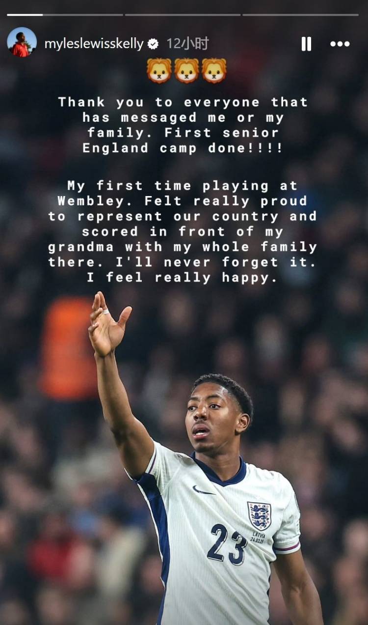 斯凯利写道:“感谢所有为我和我的家人送上问候的人,首次英格兰一线队之旅结束了!!!这是我第一次在温布利球场踢球。能为国出战,并在奶奶和全家面前进球,我倍感骄傲。我永远不会忘记,也感到非常开心。”
